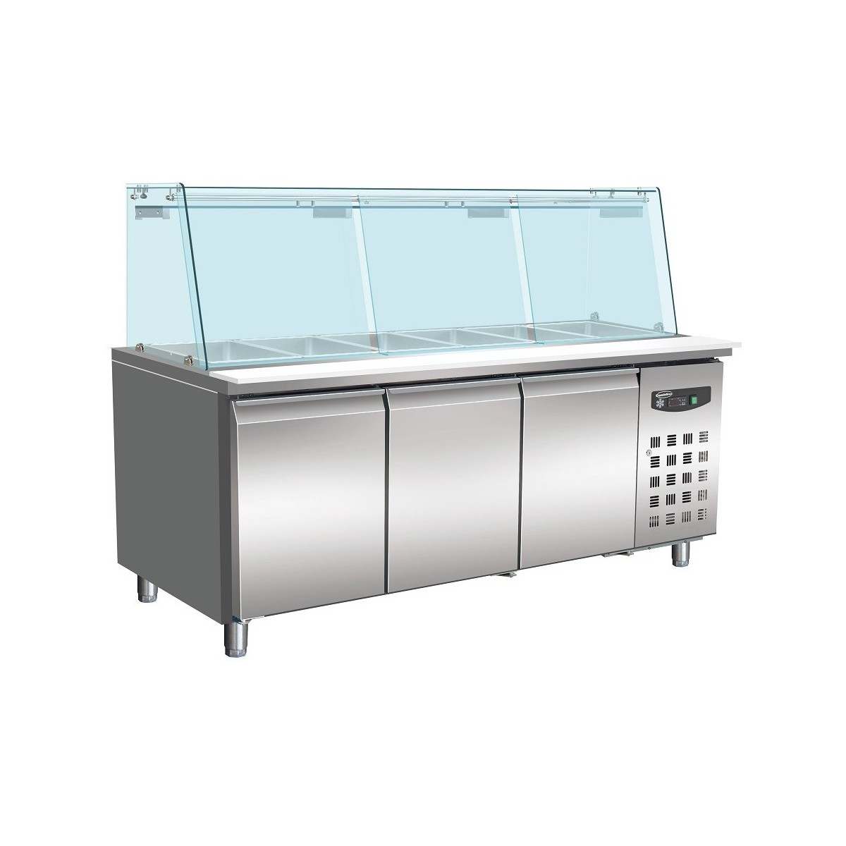 TABLE RÉFRIGÉRÉE AVEC VERRE 3 PORTES 5X 1/1 GN RÉCIPIENT
