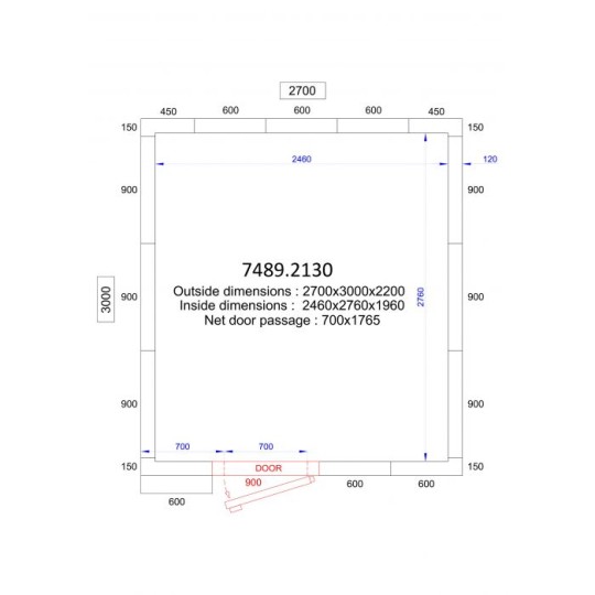 - Dim. LxPxH intérieur (mm)2460x2760x1960