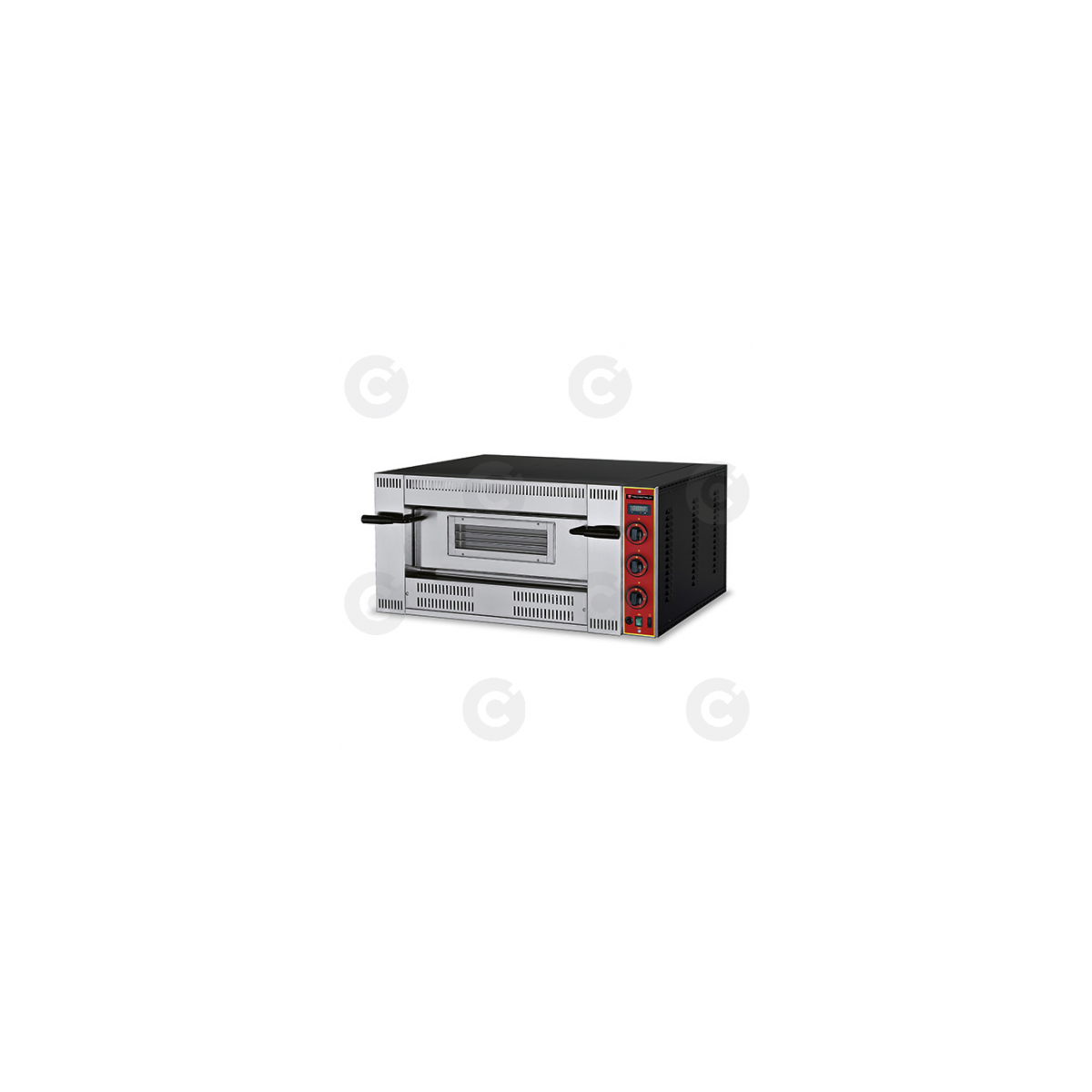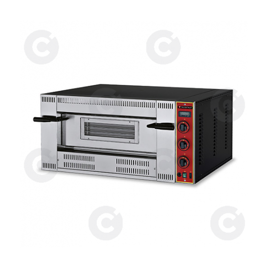 • Façade en acier inox. • Tableau de commandes mécaniques. • Thermomètre électronique en façade. • Porte à ouverture contrebalancée. • Éclairage intérieur. • Régulation indépendante de la voûte et de la sole pour chaque chambre. • Température de fonctionnement : 450°C. • Monté d’origine en gaz B/P (injecteurs Gaz Nat fournis). Dimensions ext. (L x P x H en mm) 1300 x 1140 x 470 Dimensions int. (L x P x H en mm) 920 x 920 x 155 Puissance 24,5 kW Alimentation MONO 230 V Poids net 181 kg Commandes Mécaniques Capacité 9 pizzas Ø 300 mm
