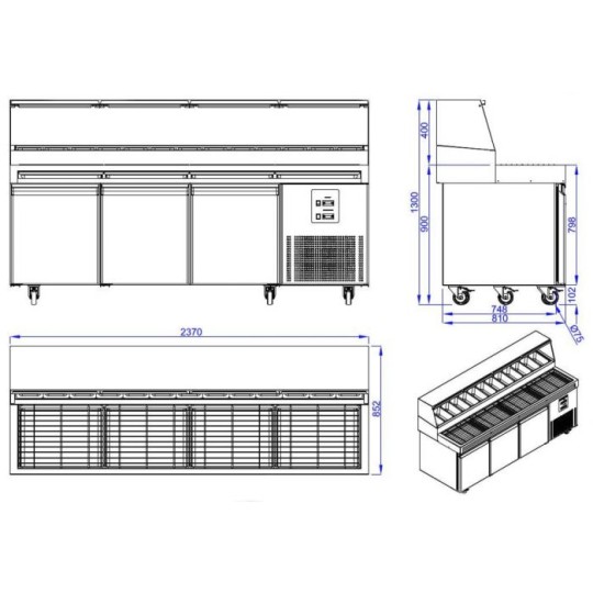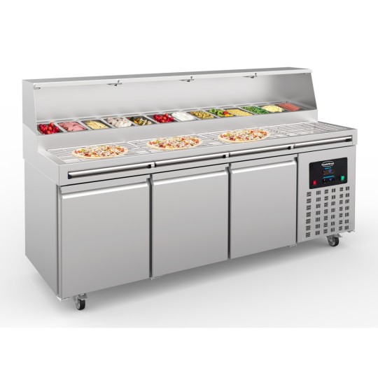 TABLE PRÉP POUR PIZZA 3 PORTES 13x 1/3GN RÉCIPIENT